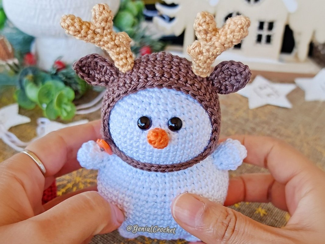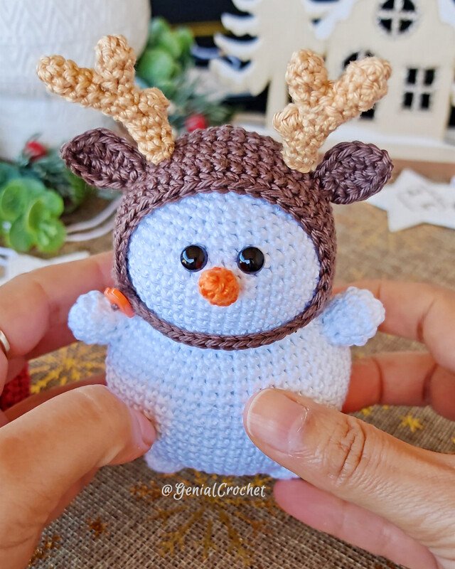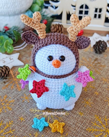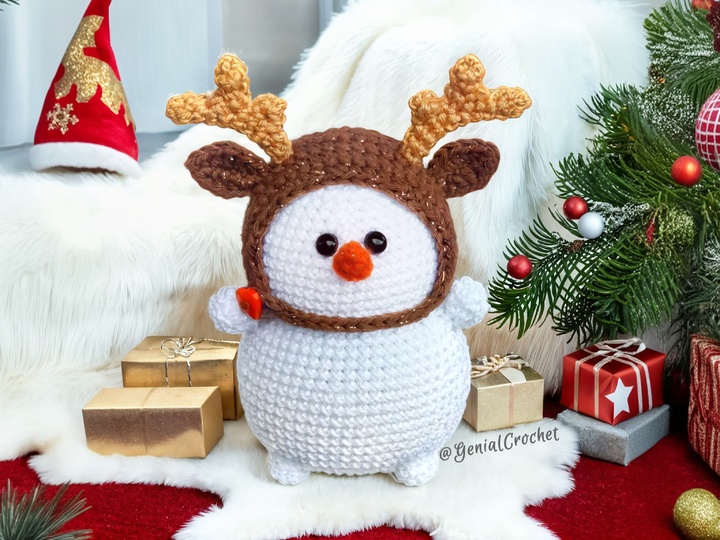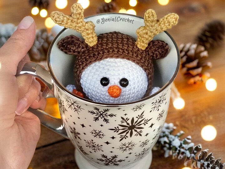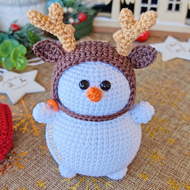 Weihnachtliches Häkelmuster zur Anfertigung eines bezaubernden Schneemann-Amigurumis.