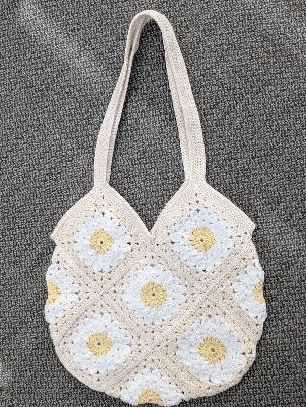 Die Tasche ist ca. 50 cm breit und 50 cm hoch (mit Henkel ca.75 cm). Die Größe ist jedoch auch abhängig davon, wie fest oder locker gehäkelt wird. Bei der Verwendung anderer Wolle muss die Nadelstärke und auch die Wollmenge entsprechend angepasst werden.
