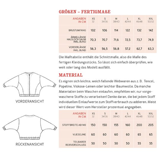 6 Doppelgrößen XS (32) bis XXL (50/52)