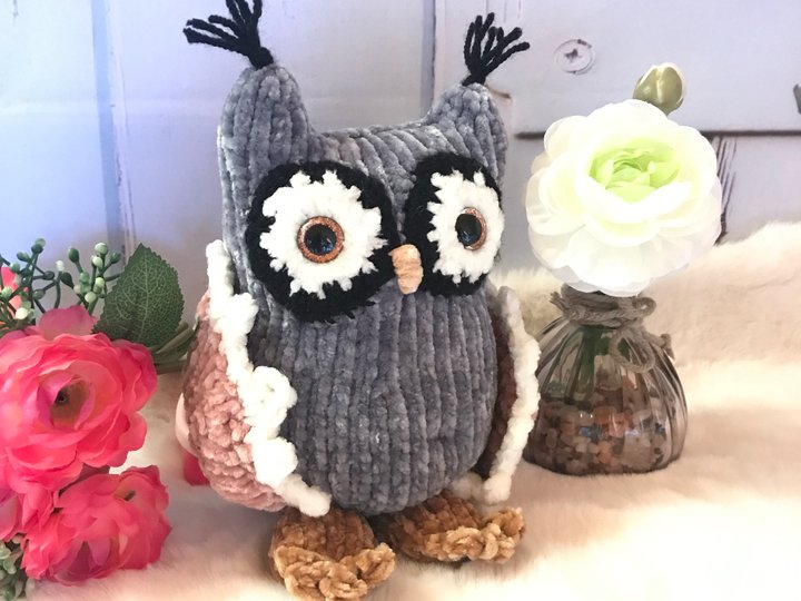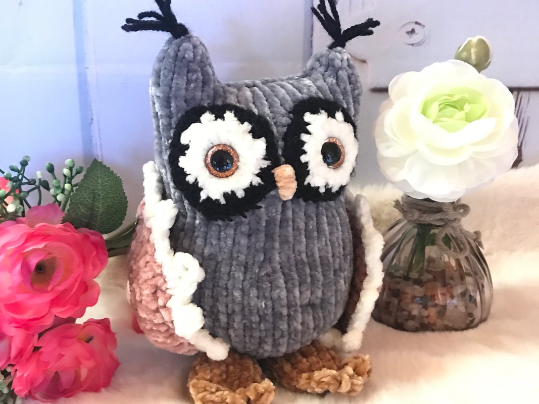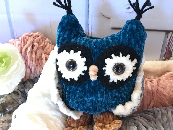 Die fertige Eule ist ca. 18-20 cm groß.