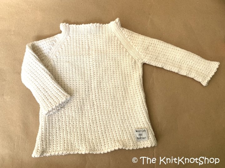 Der Pullover wird ohne Nähte in einem Stück gefertigt. Es ist kein Zusammennähen nötig!