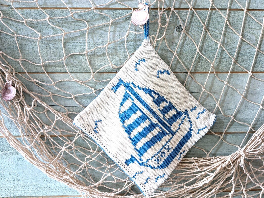 Die Anleitung beinhaltet eine schriftliche bebilderte Ausführung, wie Du die Topflappen stricken kannst, sowie zwei übersichtliche Strickschemas für die Motive "Segelboot" und "Steuerrad".