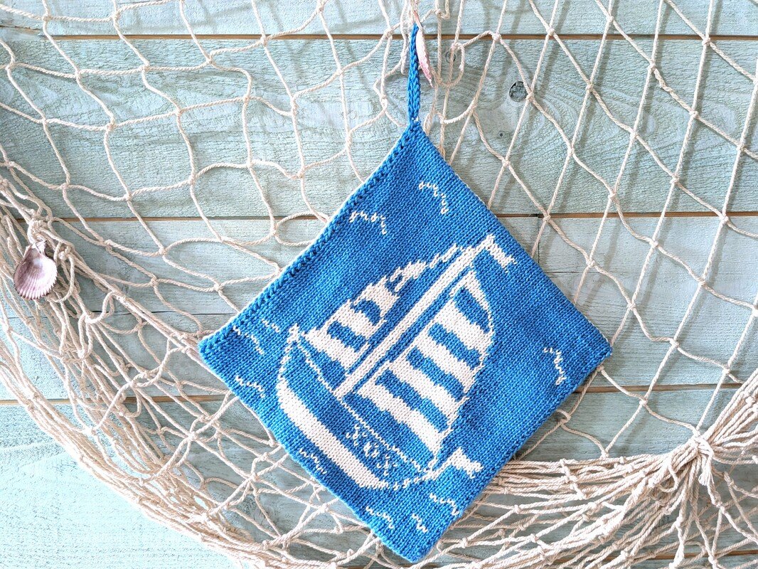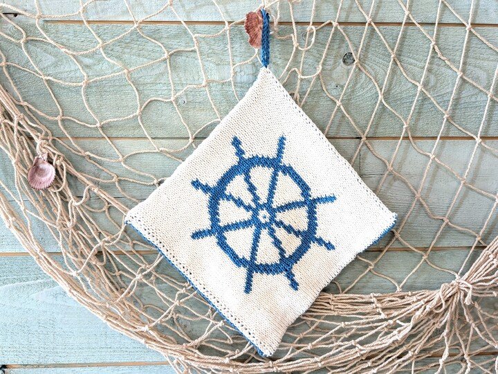 Nach dem ersten Set „Lust auf Meer“ hat es mich total gereizt, noch ein weiteres Paar Topflappen zu stricken, die an Ferien und schöne Erlebnisse am Meer erinnern. Und ein Segelboot mit Steuerrad dürfen bei maritimer Deko doch wirklich nicht fehlen, oder? Mit diesen Topflappen macht das Kochen gleich nochmal mehr Spass - und vielleicht kochst Du dazu ja sogar ein Gericht, das Dich an die letzten Ferien am Strand erinnert.