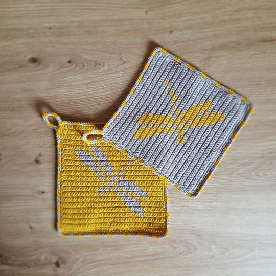 Diese Topflappen sind der Klassiker unter den gehäkelten Topflappen. Sie schützen die Hände nicht nur vor z.B. zu heißen Topfgriffen, sondern sie verschönern auch jede Küche. Gleichzeitig können sie auch als Untersetzer verwendet werden.
