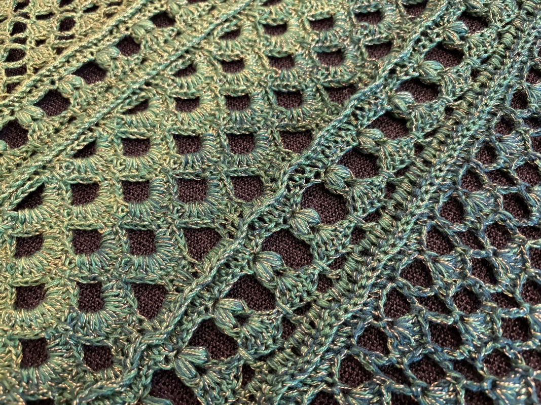 Das Tuch kann in jeder beliebigen Größe gehäkelt werden, da sich die Reihen wiederholen. Bitte beachte, wenn du eine andere Wolle verwendest, eine andere Nadelstärke, oder generelle lockerer/fester häkelst, kann die Größe variieren.