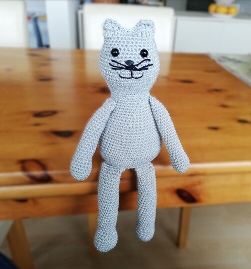 Katinka ist ca.34 cm groß. Falls du ein anderes Garn verwendest, kann die Größe natürlich variieren.