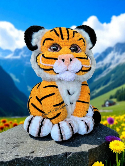 Mit Hilfe dieser detaillierten und bebilderten Schritt für Schritt Anleitung kannst Du einen süßen, liebevollen und stolzen Tiger häkeln. Der Kopf ist durch ein Gelenk mit dem Körper verbunden und kann daher in alle Richtungen gedreht werden. Das verleiht Teagen noch mehr Charme. Ein Gelenk ist jedoch nicht unbedingt erforderlich. Der Tiger kann auch ohne bewegliches Gelenk gehäkelt werden. Mit Hilfe dieser Anleitung kannst Du sowohl den weißen als auch den orangefarbenen Tiger häkeln. Neben dem Farbunterschied beinhaltet der Kopf des orangen Tigers zwei zusätzliche Modellierschritte, die ihm einen etwas anderen Gesichtsausdruck verleihen. Die zusätzlichen Modellierschritte sind jedoch kein Muss. Du kannst den Kopf selbstverständlich auch wie den Kopf des weißen Tigers modellieren.