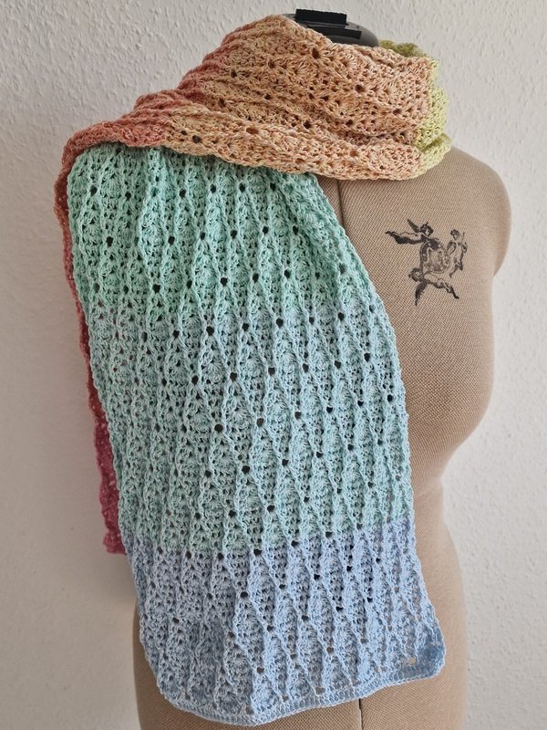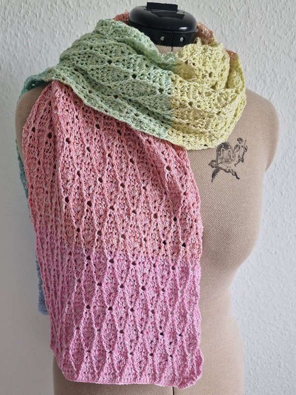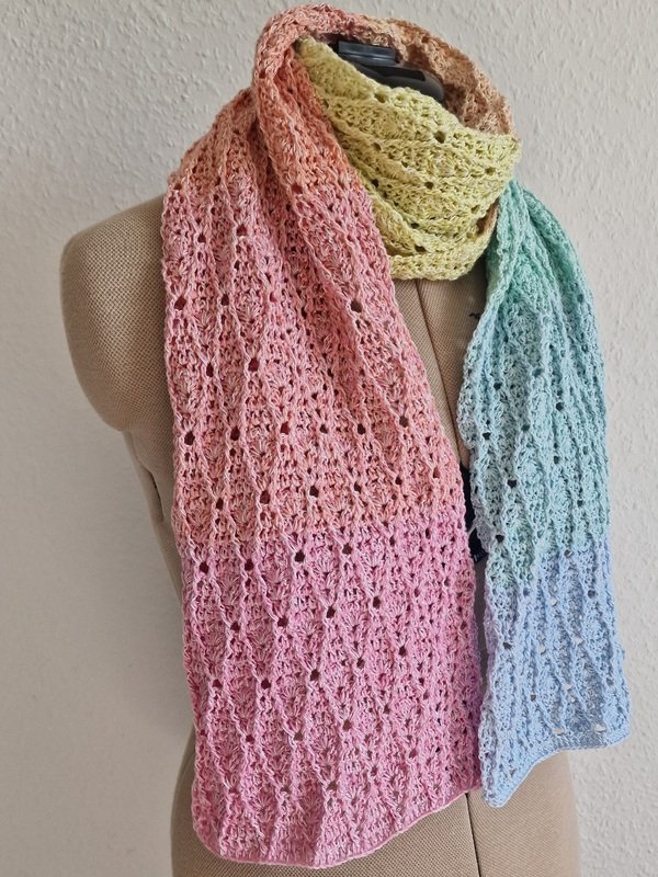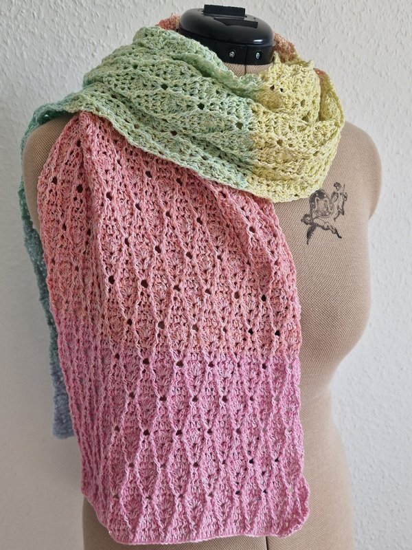 Du musst Luftmaschen, Stäbchen und Reliefstäbchen können, dann dürfte dir dieser Schal keine Schwierigkeiten machen. Da sich die 8 Musterreihen stets wiederholen, ist es auch relativ schnell verinnerlicht.