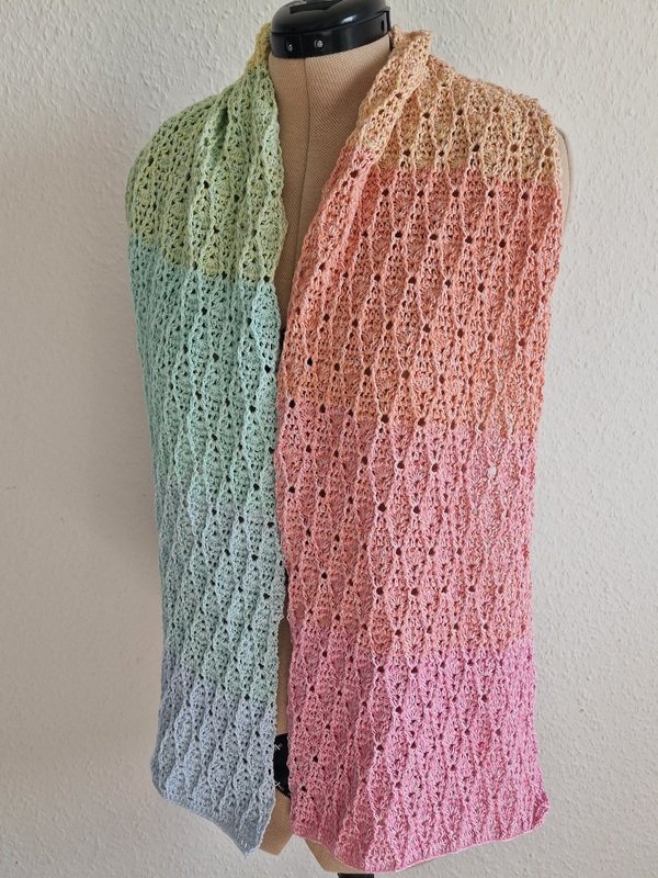 Nach meinen Angaben wird der Schal ca. 28cm breit und 170cm lang. Er kann aber auch ohne Probleme verlängert werden.