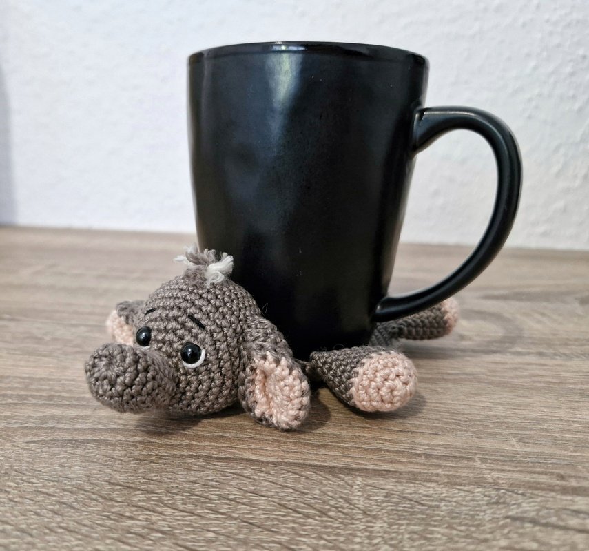 Eine detailierte und bebilderte Häkelanleitung für einen niedlichen Elefanten-Untersetzer.