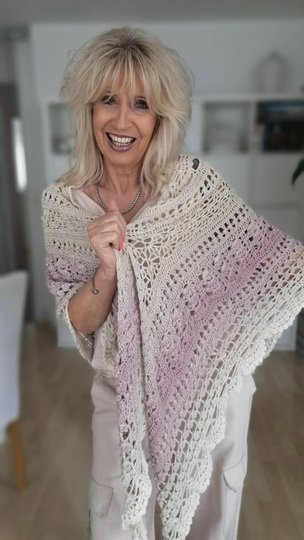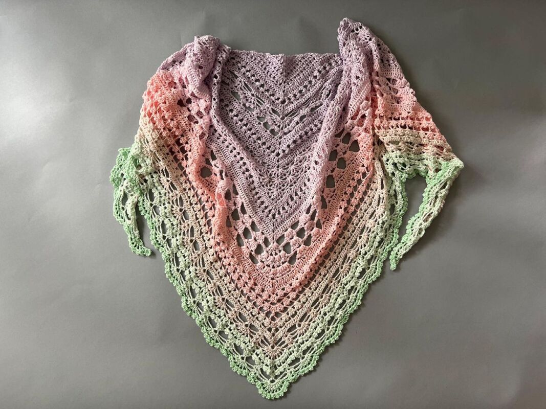 Ihr bekommt ein tiefes Dreieckstuch, also mit langer Spitze, mit vielen wunderschönen Mustern.