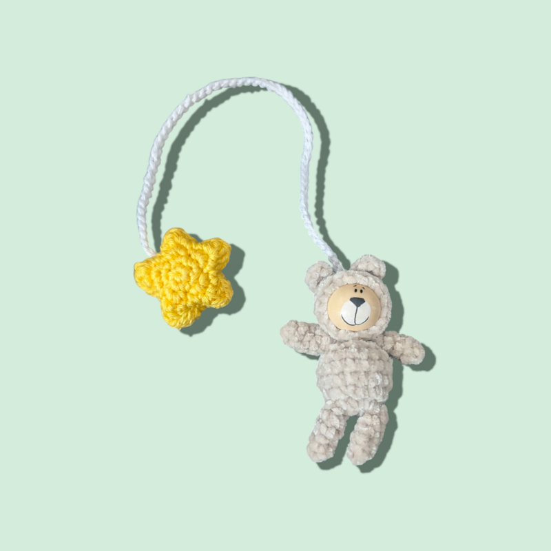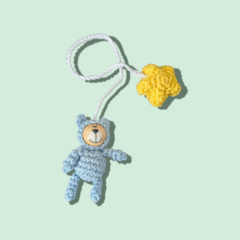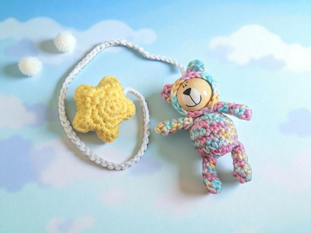 Mit dieser liebevoll gestalteten Häkelanleitung kannst du deine eigenen kleinen Teddybären zaubern! Die süßen Bärchen hängen an einem Stern und eignen sich hervorragend als Lesezeichen, Schlüsselanhänger, Taschenbaumler oder liebevolles Mitbringsel für Groß und Klein.
