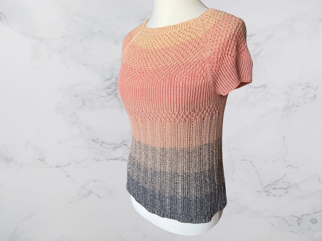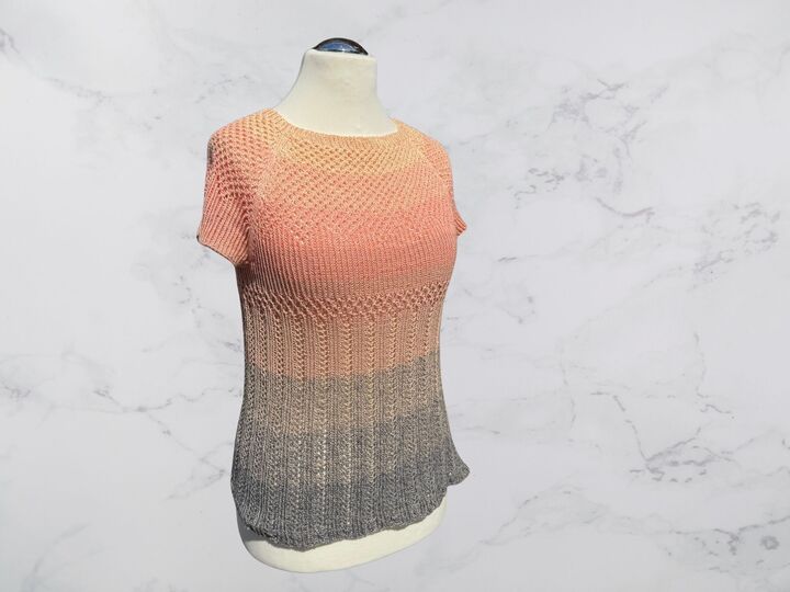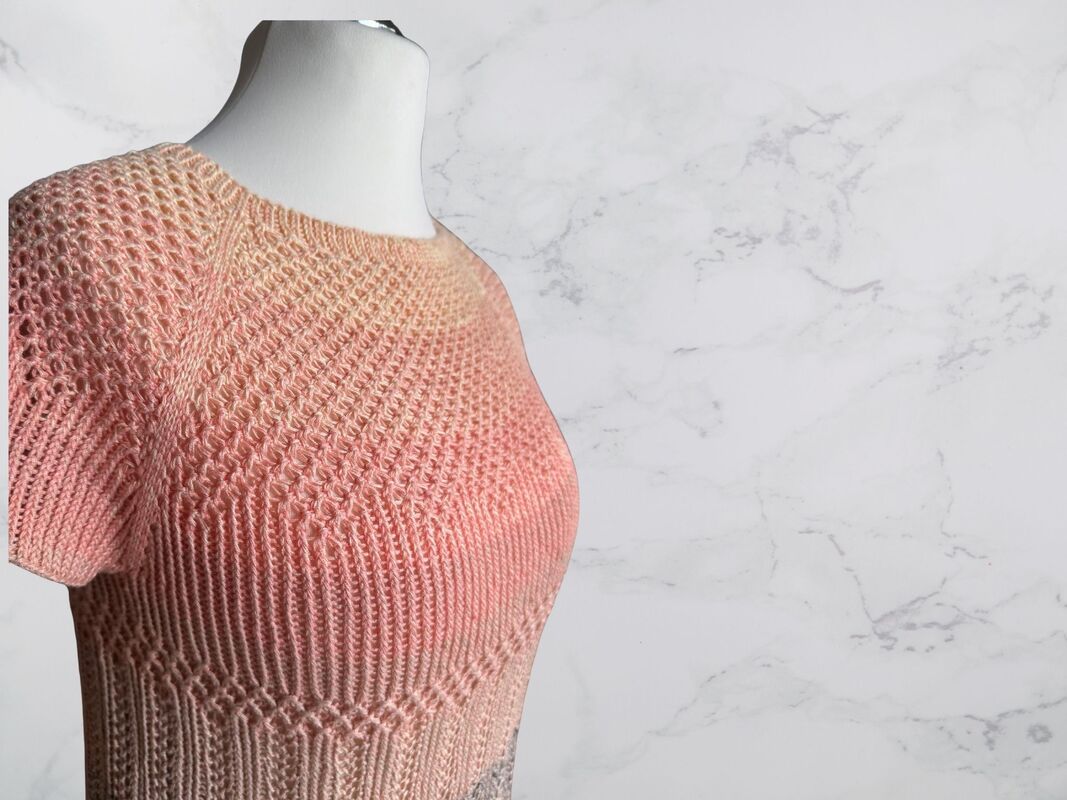 Dieses leichte Sommershirt wird nahtlos von oben nach unten gestrickt.