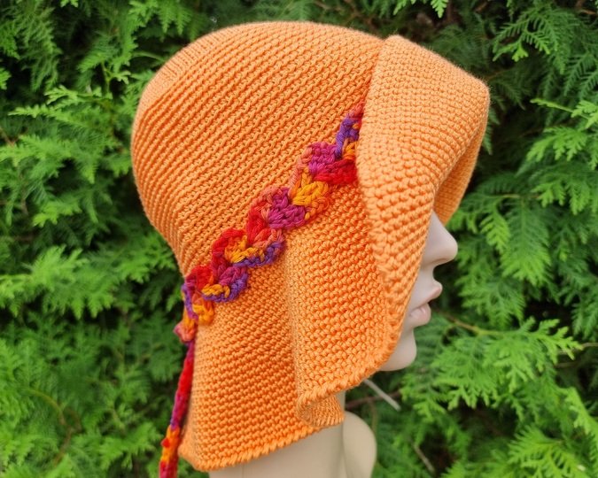 Für den Sommerhut wurde 150 g das Baumwollgarn Schachenmayr Qualität „Catania“ in 50g ca. 125 m, 100% Baumwolle, gekämmt, gasiert, mercerisiert verwendet.