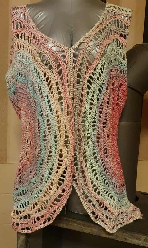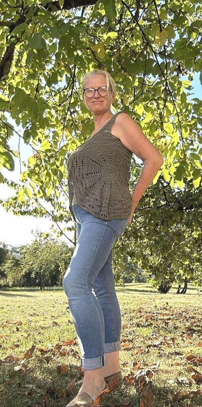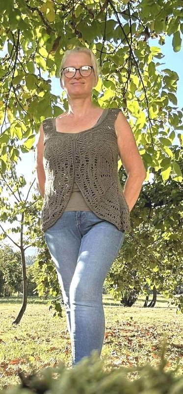 Es kann auch mit langen Ärmeln gehäkelt werden und eignet sich so auch für die kühleren Jahreszeiten über einem Langarmshirt getragen ganz ausgezeichnet.