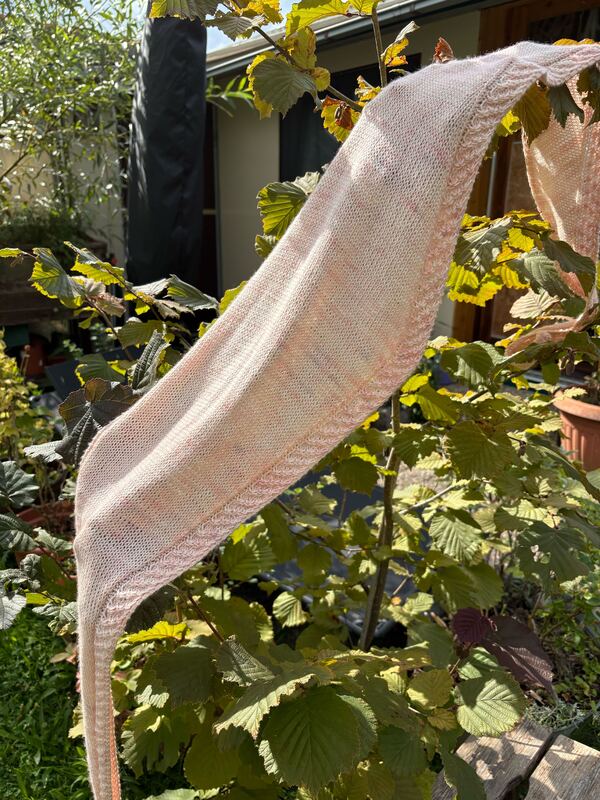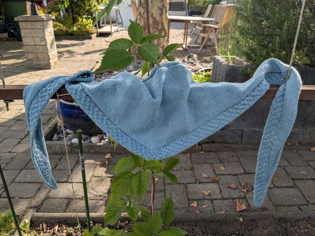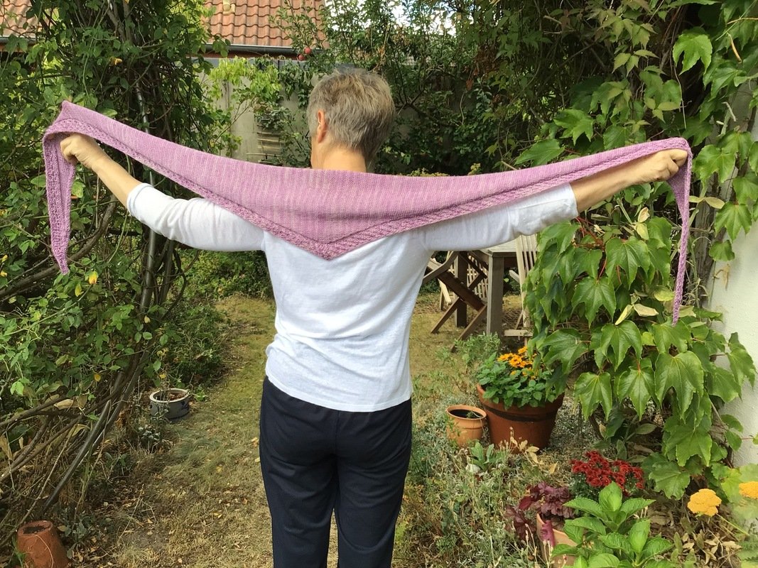 Die Idee des Designs ist, dass ca. 100g Garn verbraucht werden. Für Anpassungen an der Größe werden entsprechend mehr oder weniger Garn benötigt. Grundsätzlich kann jede Garnstärke verstrickt werden, allerdings hat das natürlich Auswirkungen auf Verbrauch und Maße des fertigen Strickstücks.