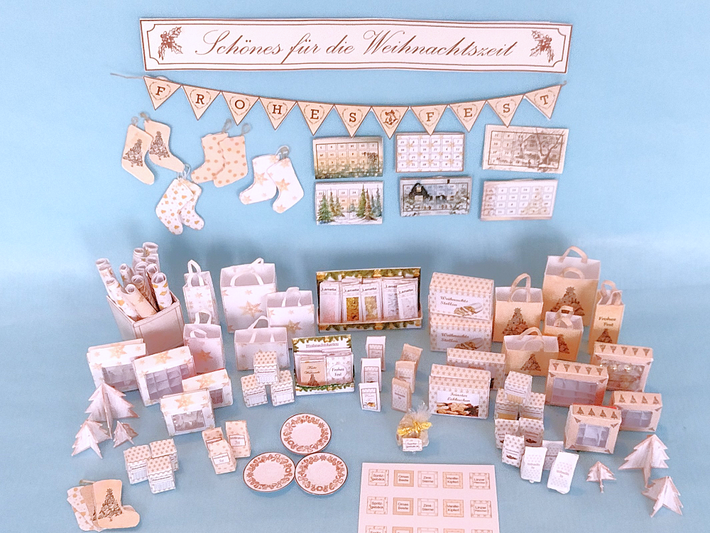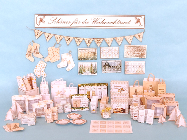 Mit Hilfe dieser Bastelbögen und der dazugehörigen Anleitung kannst du dir weihnachtliche Miniaturen aus Papier im Maßstab 1:12 basteln.
