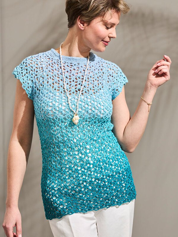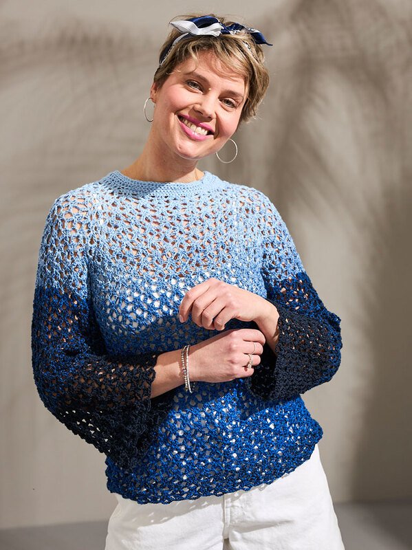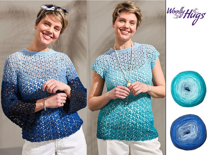 Kennst du den Woolly Hugs Bobbel Cotton? Häkel dir ein elegantes Shirt, das dich mit unvergleichlichem Tragekomfort und einem faszinierenden Farbverlauf verzaubert. In der Häkelanleitung gestaltest du ein stilvolles Langarm- oder schickes Kurzarm-Design.