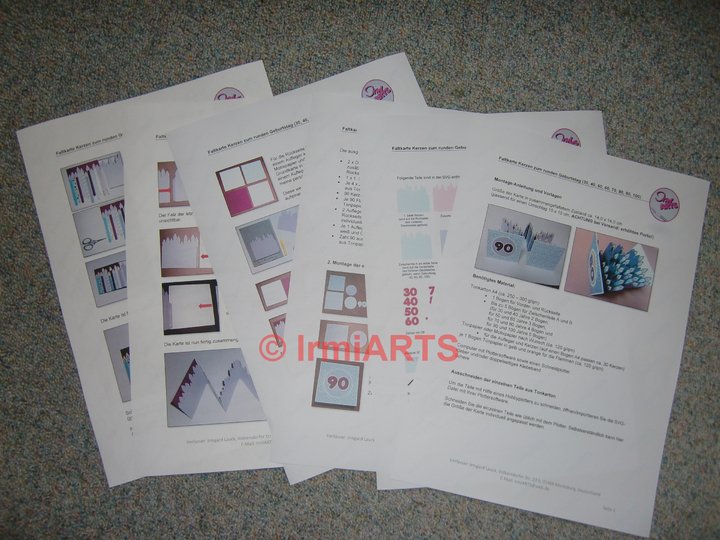 sowie eine 6-seitige PDF-Datei mit einer Montage-Anleitung wie die Karte zusammengeklebt wird in deutsch.