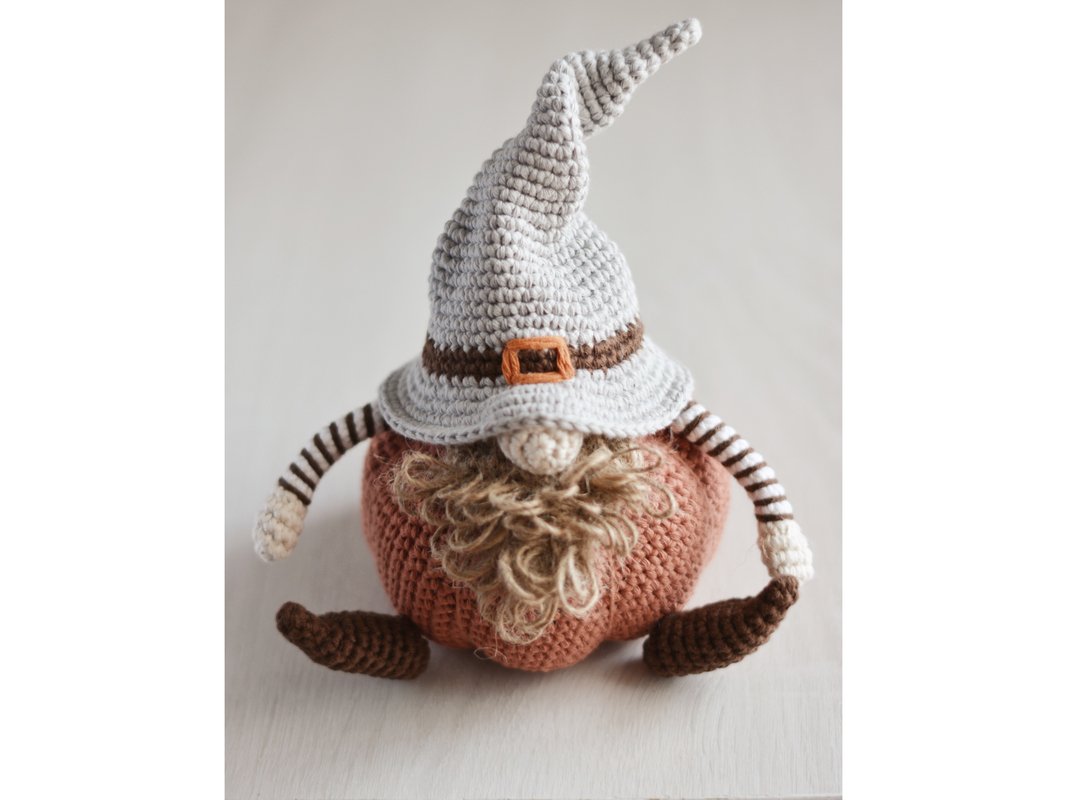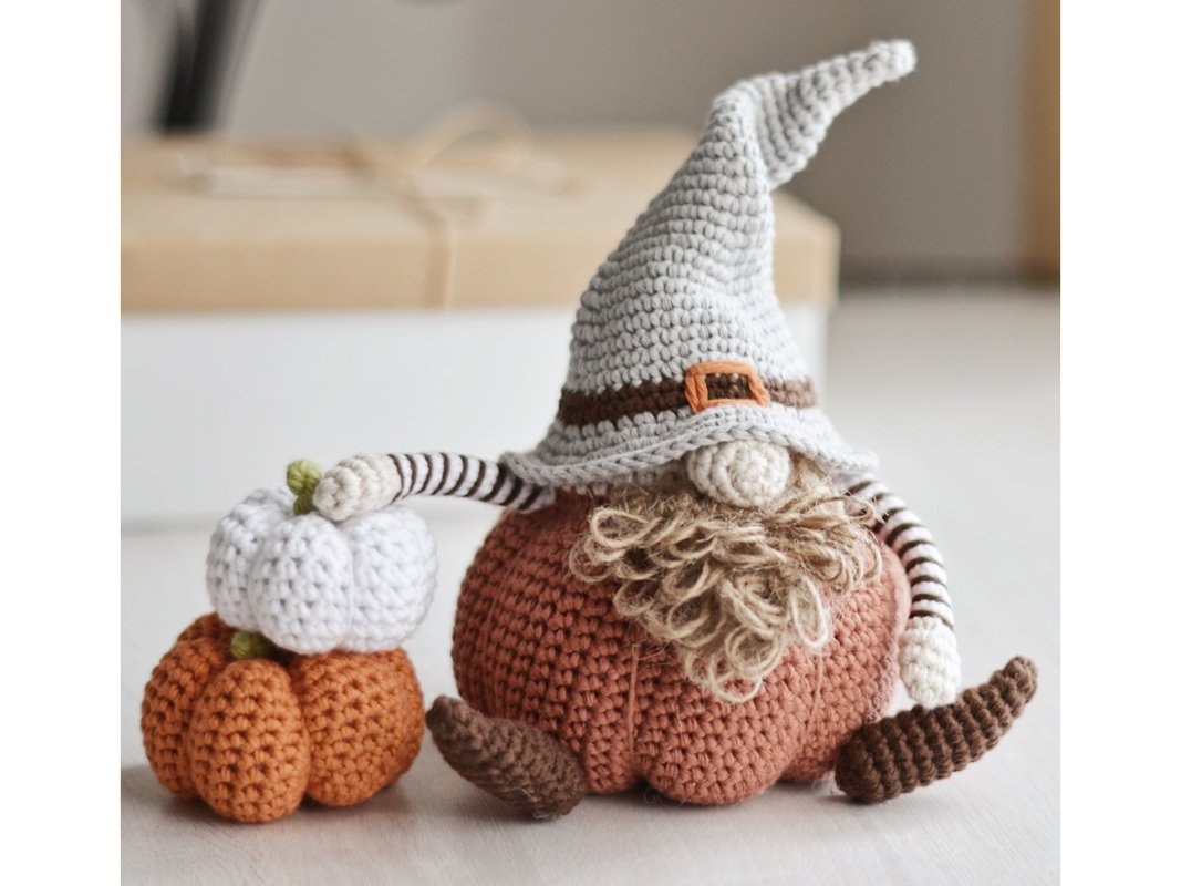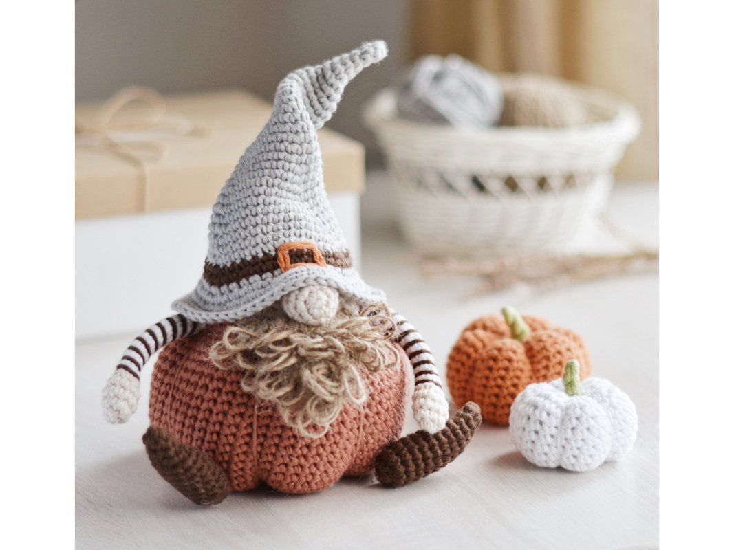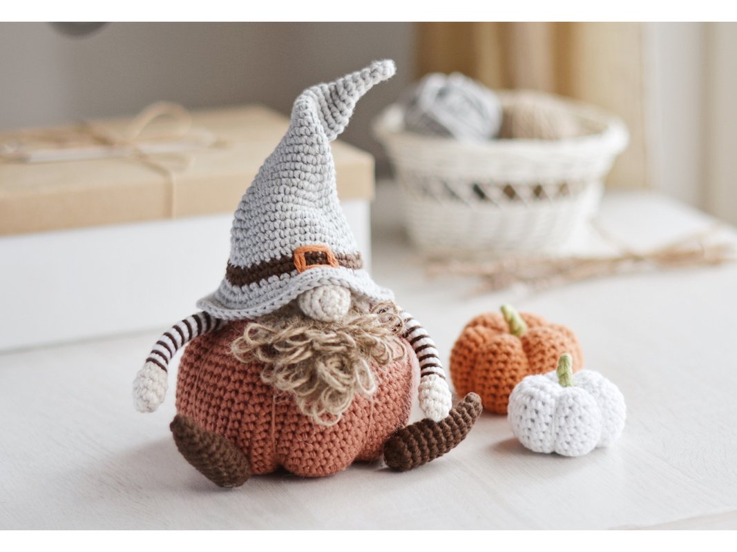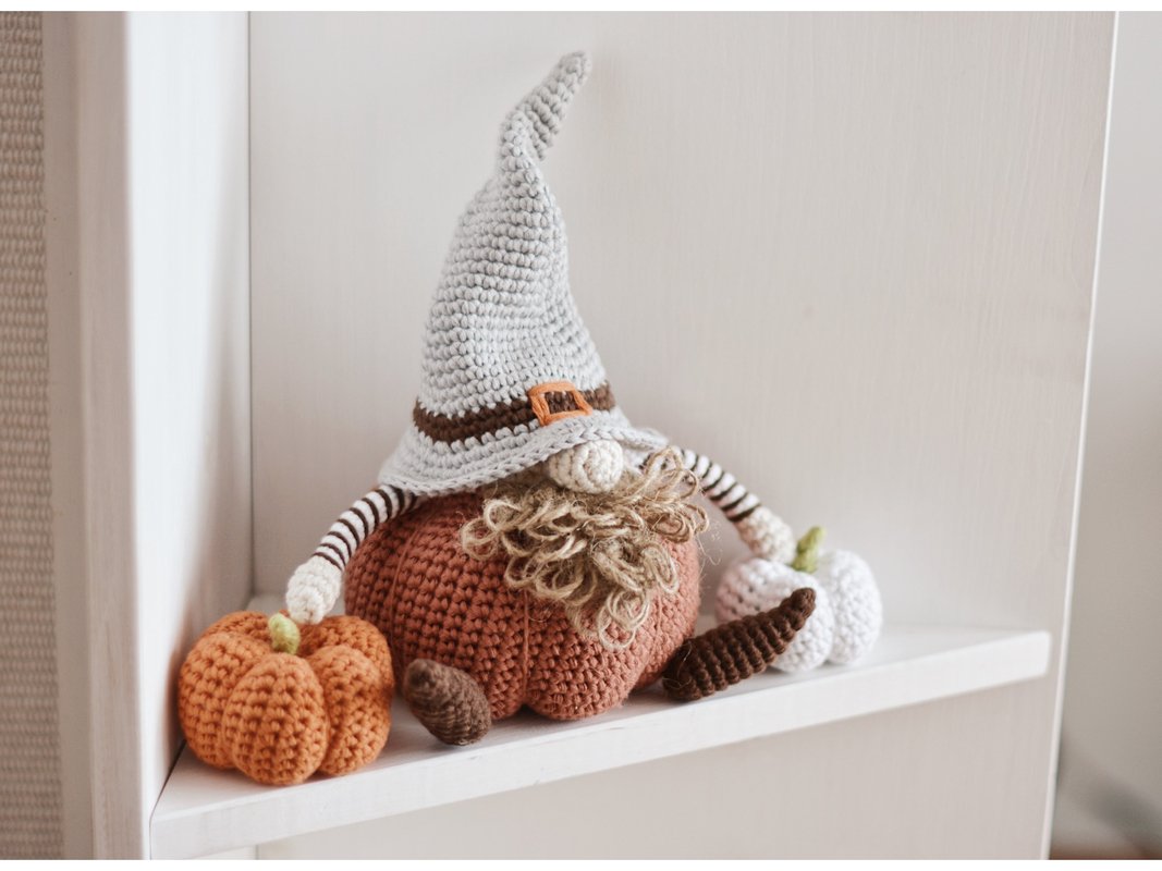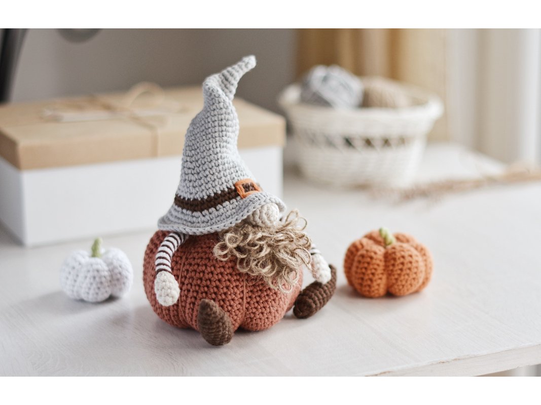 FERTIGE GRÖSSE: Amigurumi-Herbstwichtel mit Kürbissen: