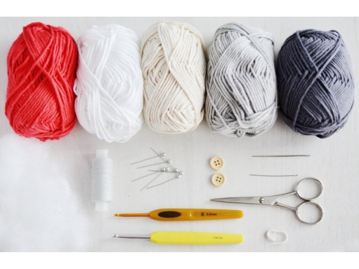 Für die Anleitung werden Häkelnadeln der Stärke 3,5 mm und 5 mm sowie 9-fädiges Kammgarn (Stärke 4) verwendet.