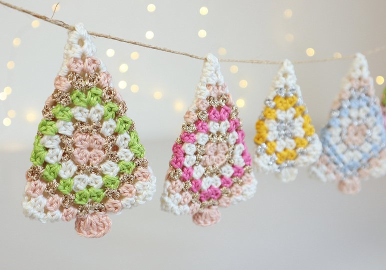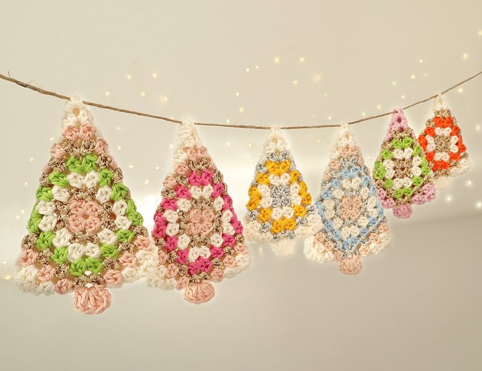 Diese kleinen gehäkelten Weihnachtsbäume sind vielseitig einsetzbar – ob als Ornament am Christbaum, als liebevoller Geschenkanhänger oder als dekorative Girlande.