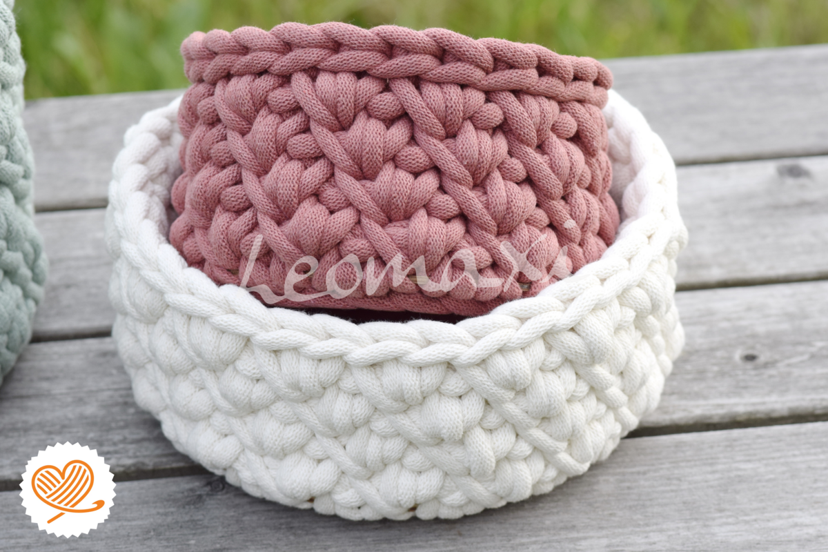 Der Häkelkorb ALERA ist nicht nur ein praktisches Aufbewahrungskörbchen, sondern auch ein echtes Design-Statement für dein Zuhause. Mit seinem stabilen Holzboden und den strukturierten, geflochten wirkendem Muster aus dicker Flechtkordel verleiht er jedem Raum eine gemütliche, moderne Note – egal ob im Wohnzimmer, Bad, Kinderzimmer oder Büro.