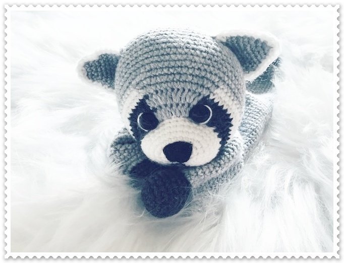Hier ist mein neuestes Babypüppchen. Ich sah im Internet Waschbären und fand sie so süß. Da beschloss ich ein Waschbär Babypüppchen zu kreieren und alle sind begeistert.