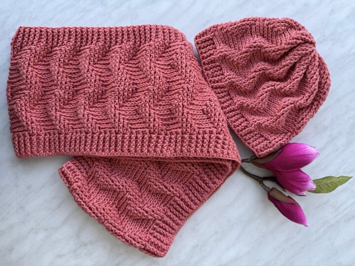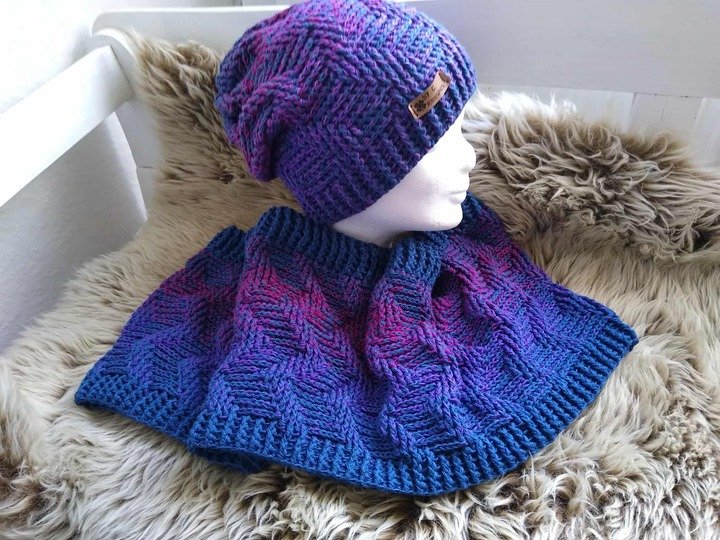 Häkelanleitung für ein Winterset bestehend aus Mütze/Beanie und Loop/Halssocke.