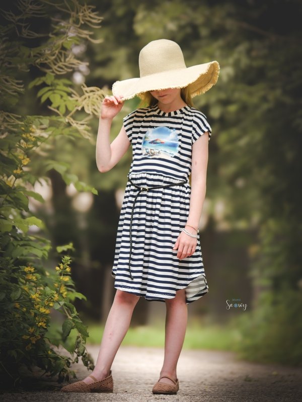Hier ist alles möglich… Das Basic Kleid die 3te hat 4 verschiedene Varianten und kann neben den beiden Basic Kleider Varianten mit zwei unterschiedlichen Volantlängen auch als Stufenkleid oder Tunika genäht werden.