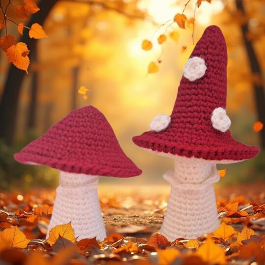 Der fertige Pilz ist ca. 15 cm hoch (runder Pilzhut) bzw. ca. 20 cm hoch (spitzer Pilzhut).