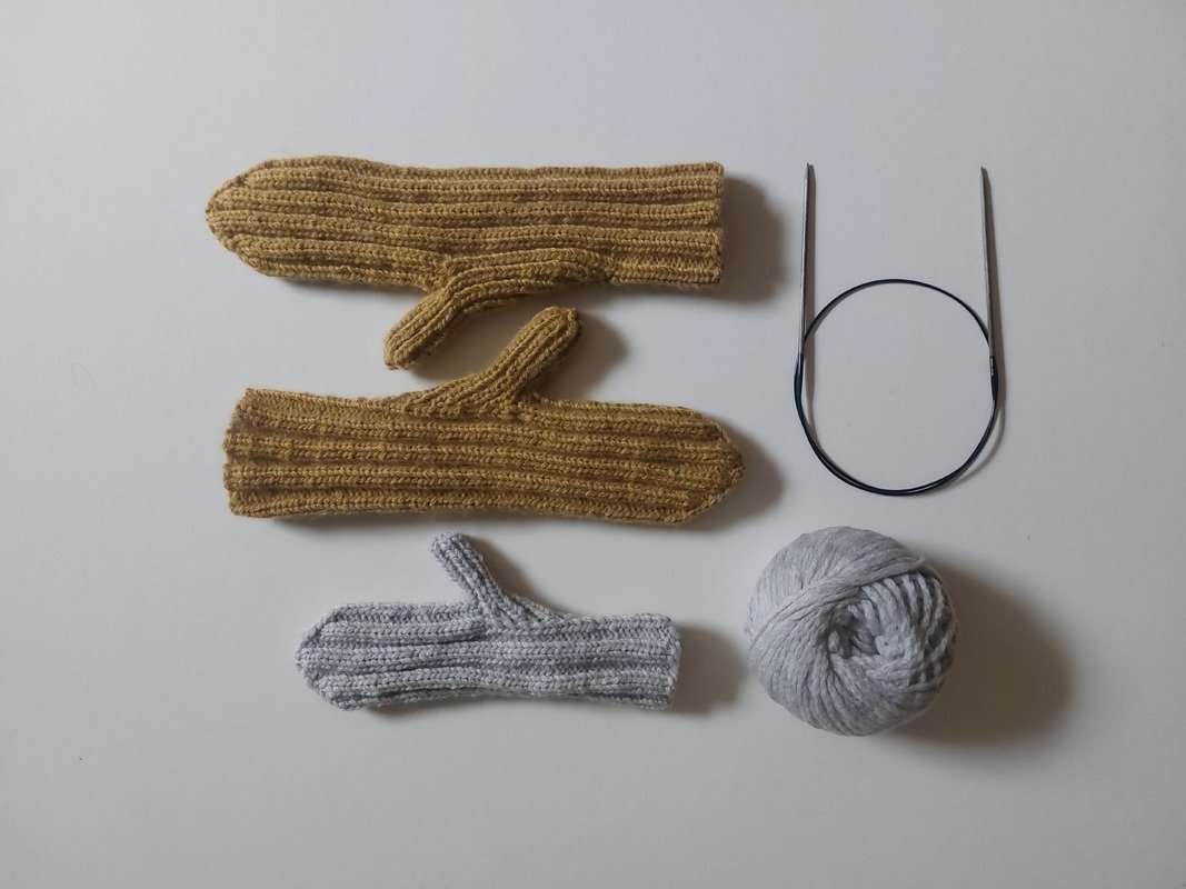 Die kompletten Fäustlinge können mit der Rundstricknadel unter Einsatz der Magic-Loop-Methode oder mit dem Nadelspiel gestrickt werden.