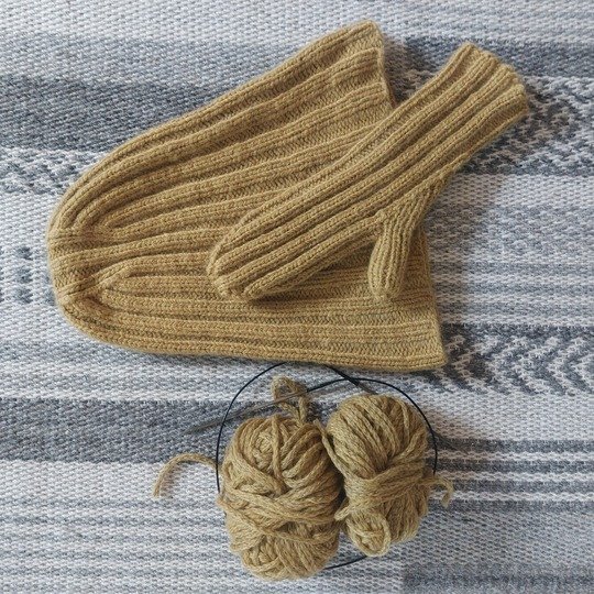20 M x 30 Rdn = 10 x 10 cm im 2x2-Rippenmuster, gewaschen und gespannnt