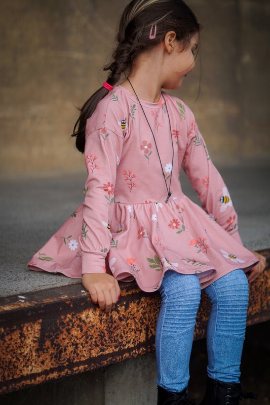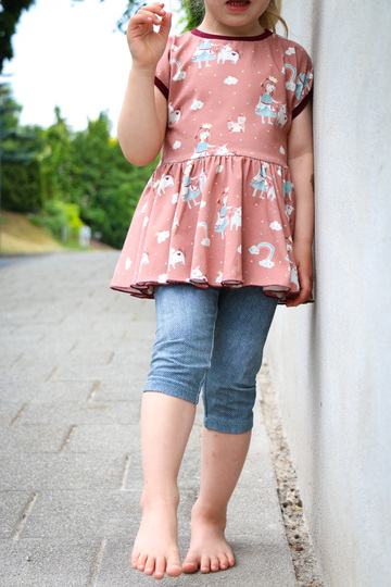 Die Traumtänzerin ist eine locker sitzende Tunika mit überschnittenen Ärmeln und einem schwingenden Tellerrock, mit dem sich kleine und große Mädchen ganz toll drehen können.