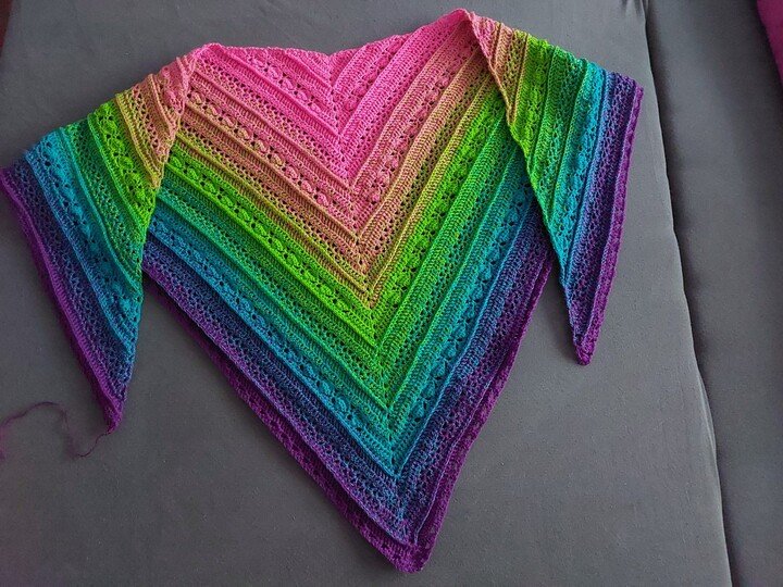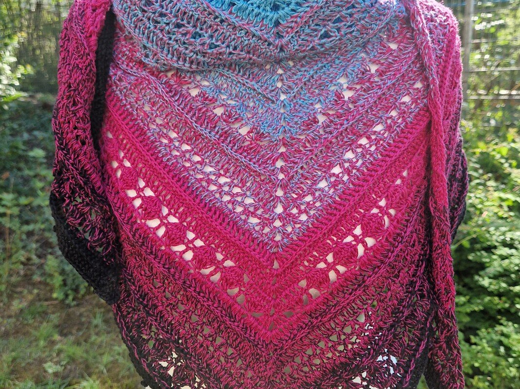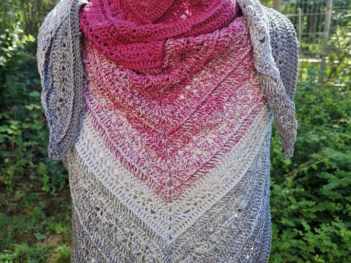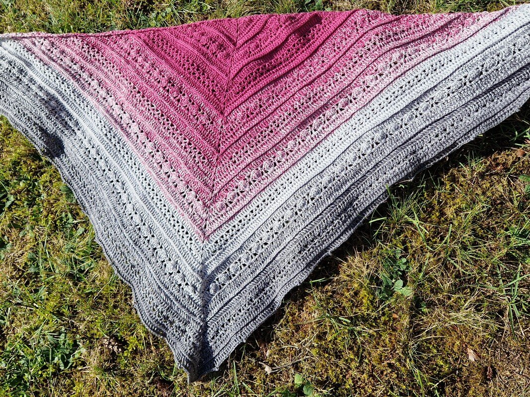 Häkelanleitung für ein symmetrisches Dreieckstuch im Endlosmuster.