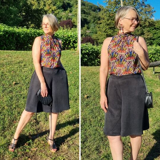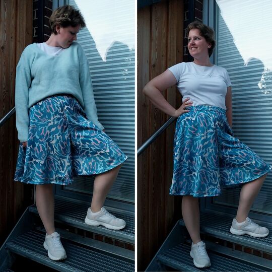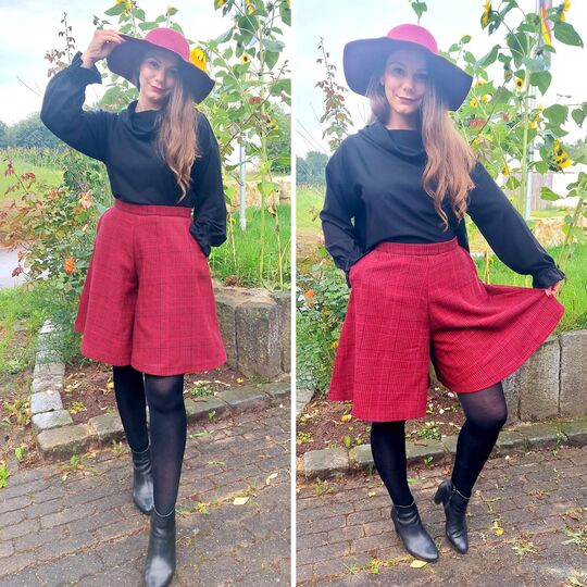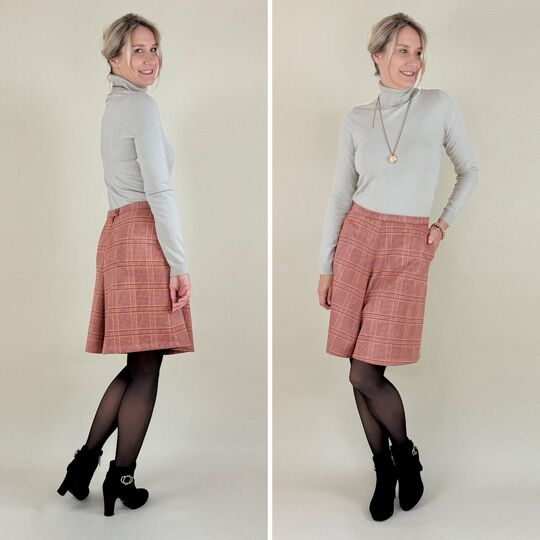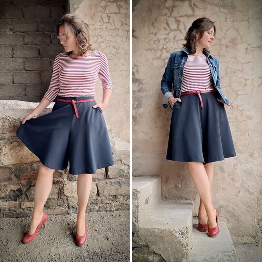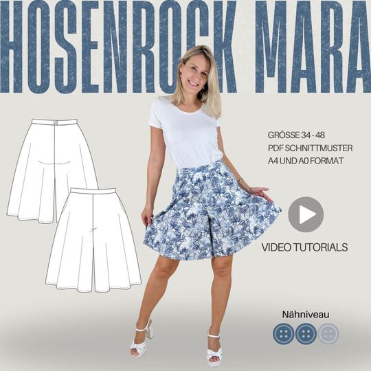 Der Hosenrock MARA ist ein Schnittmuster für alle, die feminine Eleganz und angenehmen Tragekomfort schätzen. An der Taille schmal geschnitten, öffnet sich MARA zum Saum hin in eine weite, schwungvolle Silhouette. So entsteht der Look eines Rocks – kombiniert mit der Bewegungsfreiheit einer Hose. Praktische Nahttaschen in den Seitennähten runden das Design ab. Geschlossen wird MARA hinten mit einem nahtverdeckten Reißverschluss und einem leicht versetzten Knopf am Bund – ein Detail, das für eine besonders klare Linienführung sorgt.