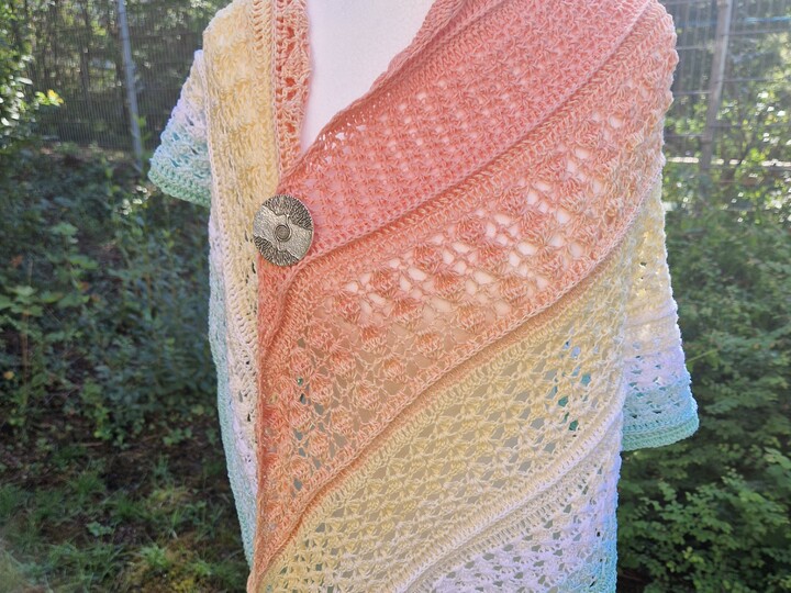 Häkelanleitung für ein flaches, symmetrisches Dreieckstuch, welches aus der Mitte heraus mit einem Farbverlaufs-Bobbel gearbeitet wird.