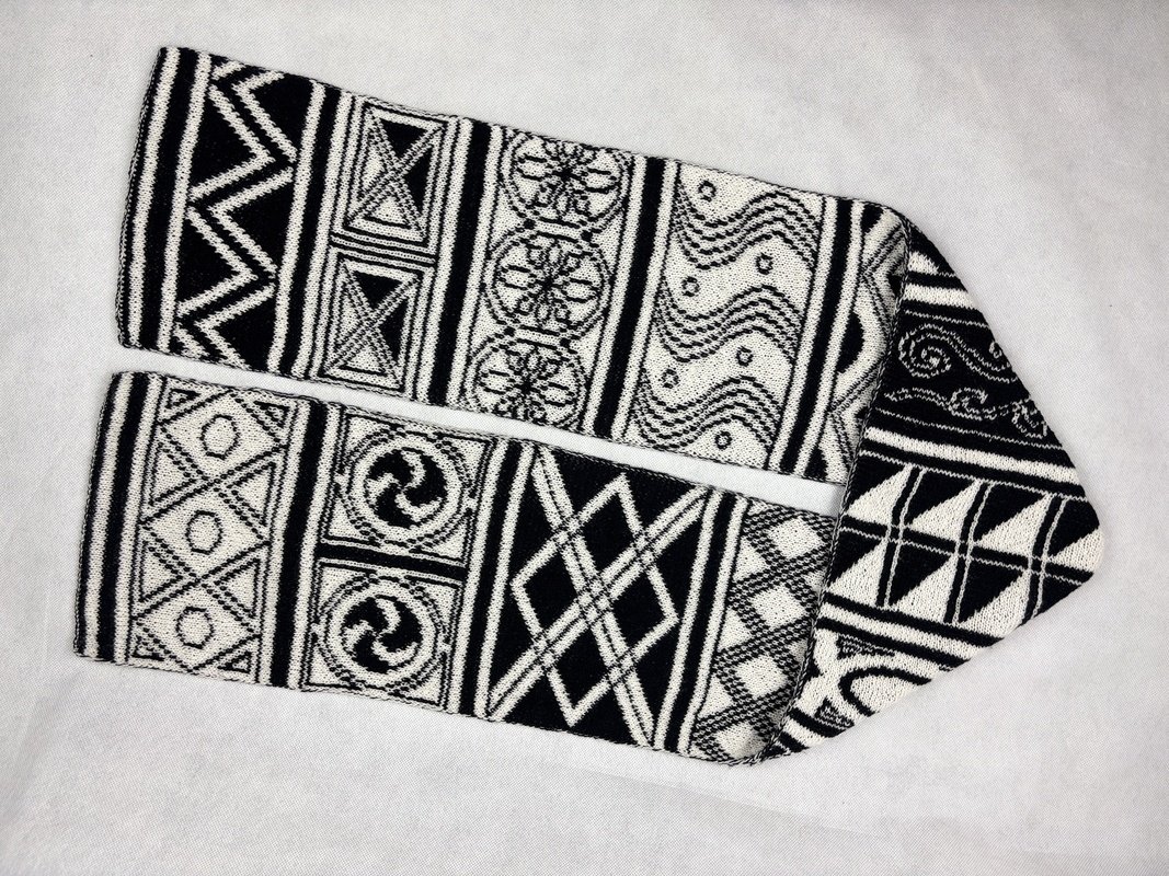 Jedes Jahr in den Herbstferien darf ich ein paar Tage im Engadin in den Schweizer Bergen verbringen. Und jedes Jahr erneut beeindrucken mich die Sgraffiti auf jeder Hausecke, jeder Fassade und rundum jedes Fenster. Diesen Reichtum an Formen und Figuren hat es mir richtig angetan. Deshalb habe ich mich von den Sgraffiti inspirieren lassen und diesen wunderschönen Schal entworfen. So habe ich immer eine schöne Erinnerung an der Zeit, die ich im Engadin verbringen durfte. Der Reichtum an verschiedenen Motiven macht das Stricken dieses Schals sehr kurzweilig. Ein paar wenige Panels sind sehr zählintensiv und andere Panels lassen sich fast intuitiv stricken. Zwischendurch gibt es sogar einzelne Reihen ohne Farbwechsel. Die Abwechslung macht richtig viel Spass.