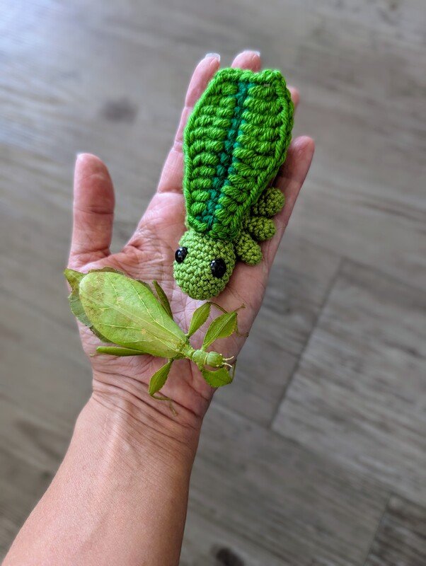 2 in 1: du kannst mit dieser Anleitung entweder ein Wandelndes Blatt (Phyllium sp.) oder eine Laubheuschrecke herstellen. Beide sind schnell und einfach gemacht.