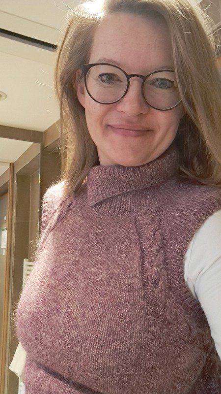 Da unter dieses Kleidungsstück in der Regel etwas drunter gezogen wird, sollte es nicht zu klein gestrickt werden. Im Design sind ca. 2-5cm Mehrweite einberechnet.