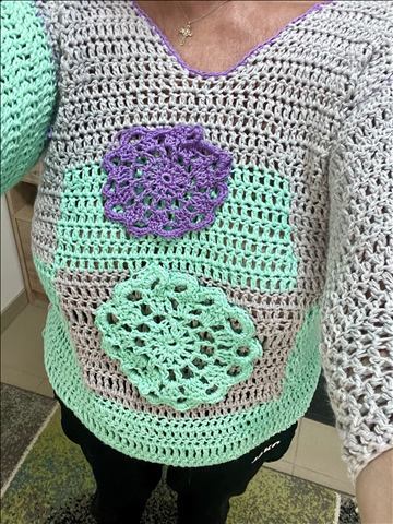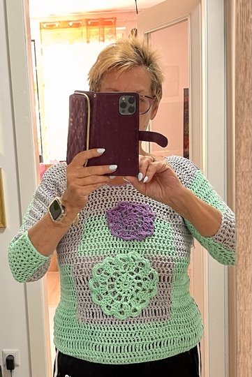 Liebe HäklerInnen, hier kommt ein wunderschöner, rasch zu arbeitender Häkelpulli mit Blümchen.