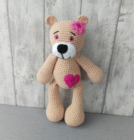 Der fertige Teddy ist je nach verwendeter Wolle ca 30 cm groß.