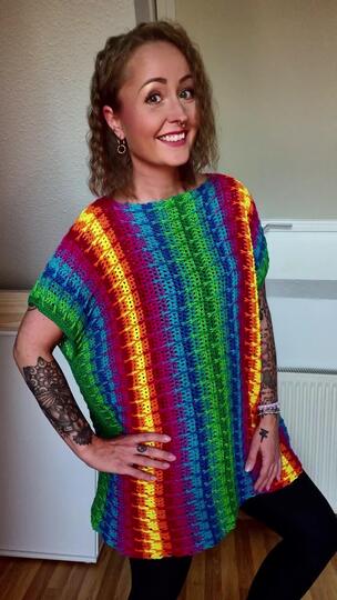 Ich habe eine Oversize Variante für Konfektionsgröße 40 gehäkelt.