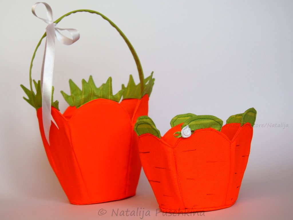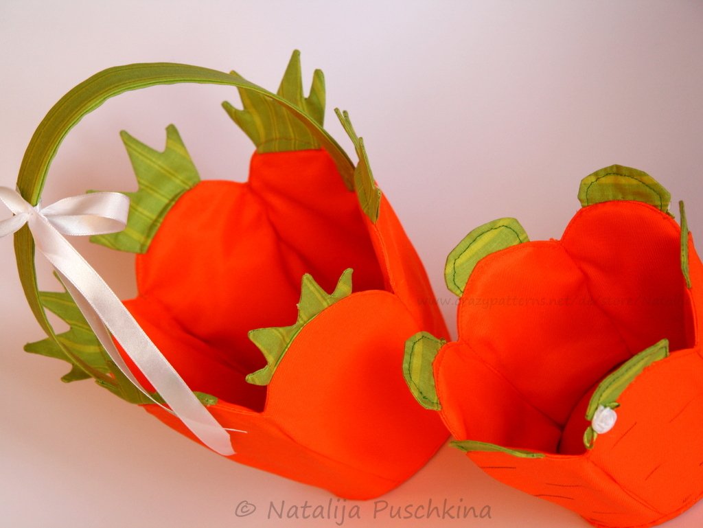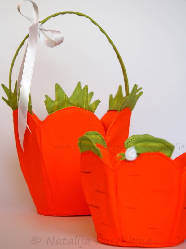 Ich habe das Körbchen aus 6 Möhren genäht. Je mehr Möhren Sie verwenden, desto größer wird das Körbchen.