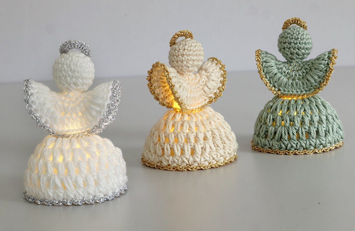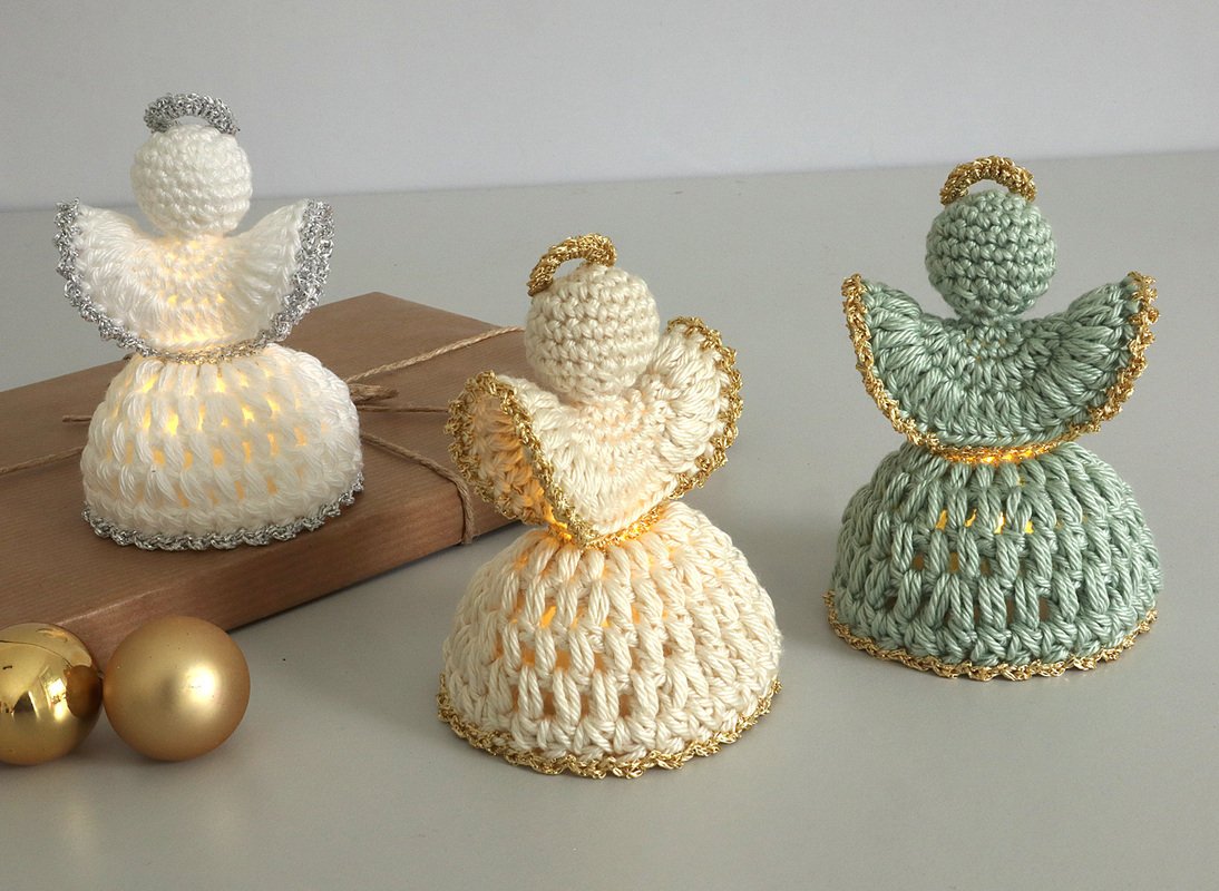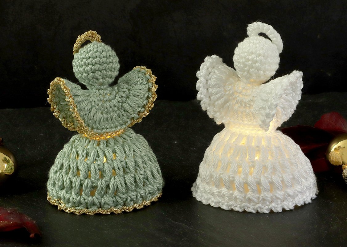 Du kannst den Engel entweder einfarbig in einem Stück häkeln – hier musst du nur den Endfaden vernähen – oder mit Glitzergarn edle Akzente setzen. Bei der zweifarbigen Variante fallen natürlich ein paar zusätzliche Fäden zum Vernähen an. Da das Arbeiten mit Glitzergarn etwas anspruchsvoller ist, empfehle ich diese Version nur geübten Häklerinnen.