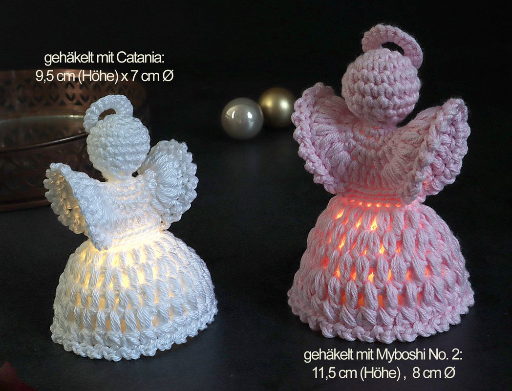 Fertige Größe (gehäkelt mit Catania): 9,5 cm (Höhe), 7 cm Ø