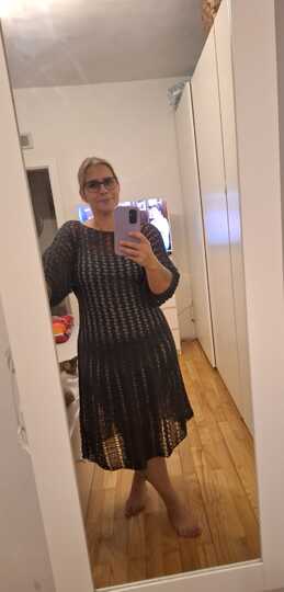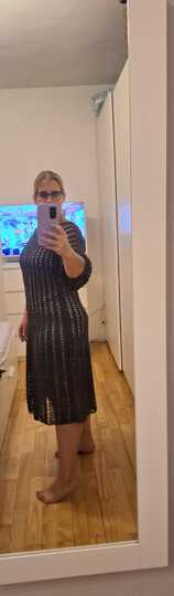 Das fertige Kleid wirkt elegant und modern zugleich – ein echtes Statement-Piece, das sowohl im Alltag als auch zu besonderen Anlässen getragen werden kann. Mit der richtigen Garnwahl lässt es sich klassisch schlicht oder auffällig glamourös gestalten.