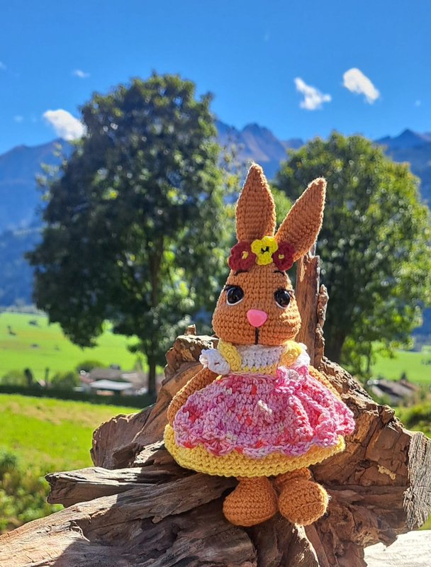 Du erhältst eine liebevoll gestaltete Häkelanleitung zur Herstellung des Dirndls für Hase "Honey".