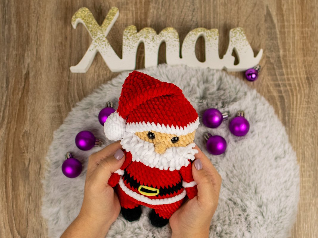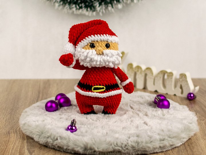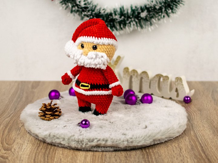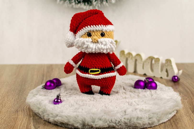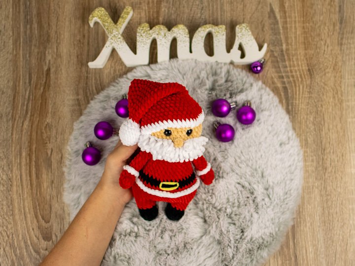 Mit dieser Häkelanleitung kannst du einen niedlichen Weihnachtsmann als Amigurumi selbst häkeln. Die Anleitung ist detailliert beschrieben und enthält viele Schritt-für-Schritt-Fotos, sodass auch weniger geübte Häkler*innen dem Projekt problemlos folgen können. Der fertige Weihnachtsmann wird ca. 20 cm groß und eignet sich perfekt als Weihnachtsdekoration oder als liebevolles Geschenk.