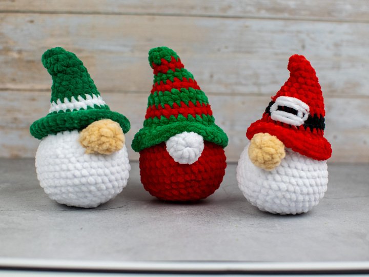 Du häkelst: in Runden mit festen Maschen, Zu- und Abnahmen; alle Figuren aus Plüsch-/Chenillegarn wirken besonders weich und „kuschlig“.